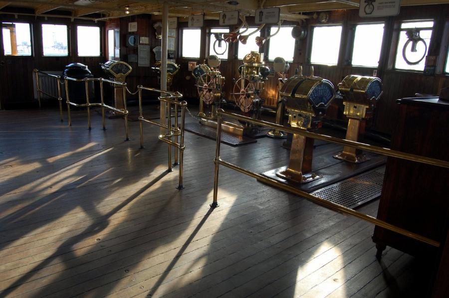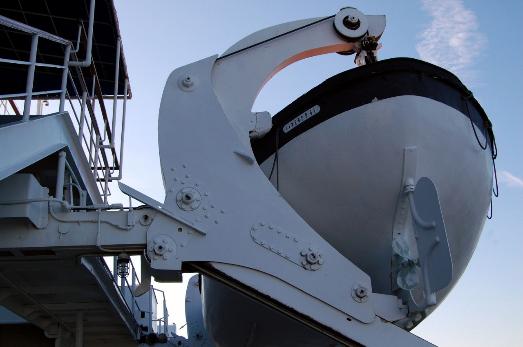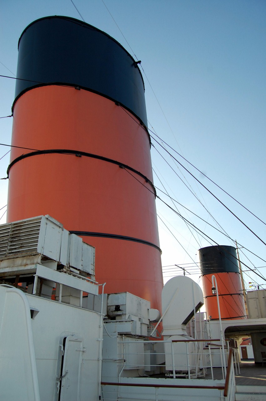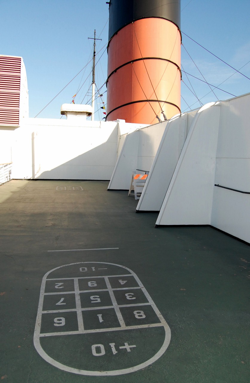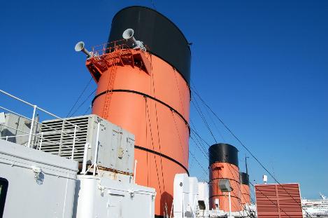 | March 24, 1936: THE QUEEN MARY departs John Brown Shipyard, steaming down the Clyde River to Gourock, Scotland. The ship goes aground twice despite prior dredging of the river and her shallow draft. Anchor trials and adjustment of the magnetic compasses are made off Gourock. Twenty of THE QUEEN MARY's lifeboats were left off the ship to save weight. Since they were manufactured in Gourock, the lifeboats were lifted into their davits upon ship's arrival. |