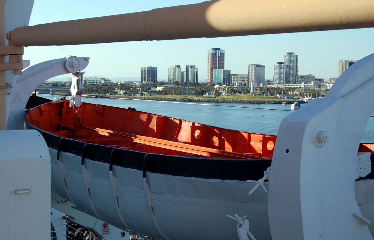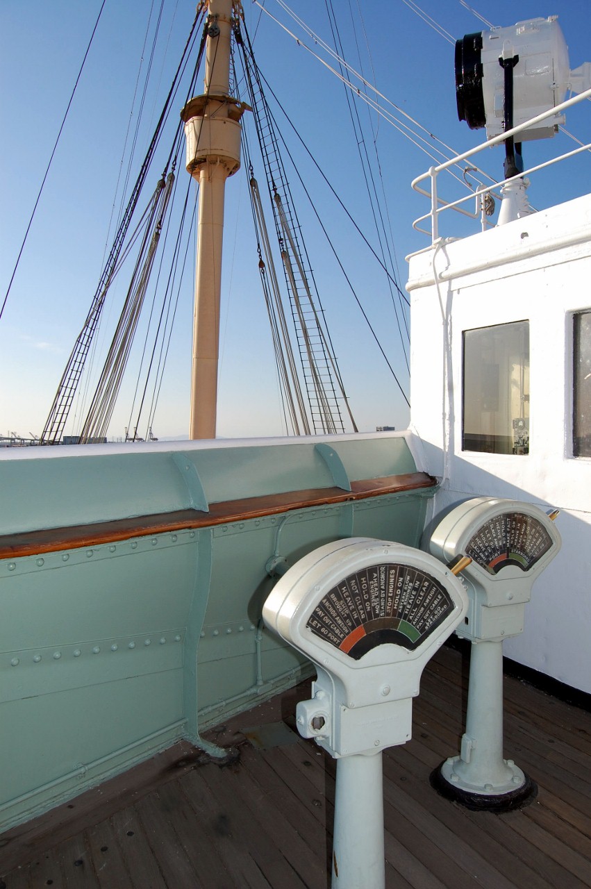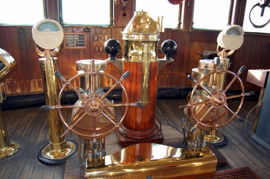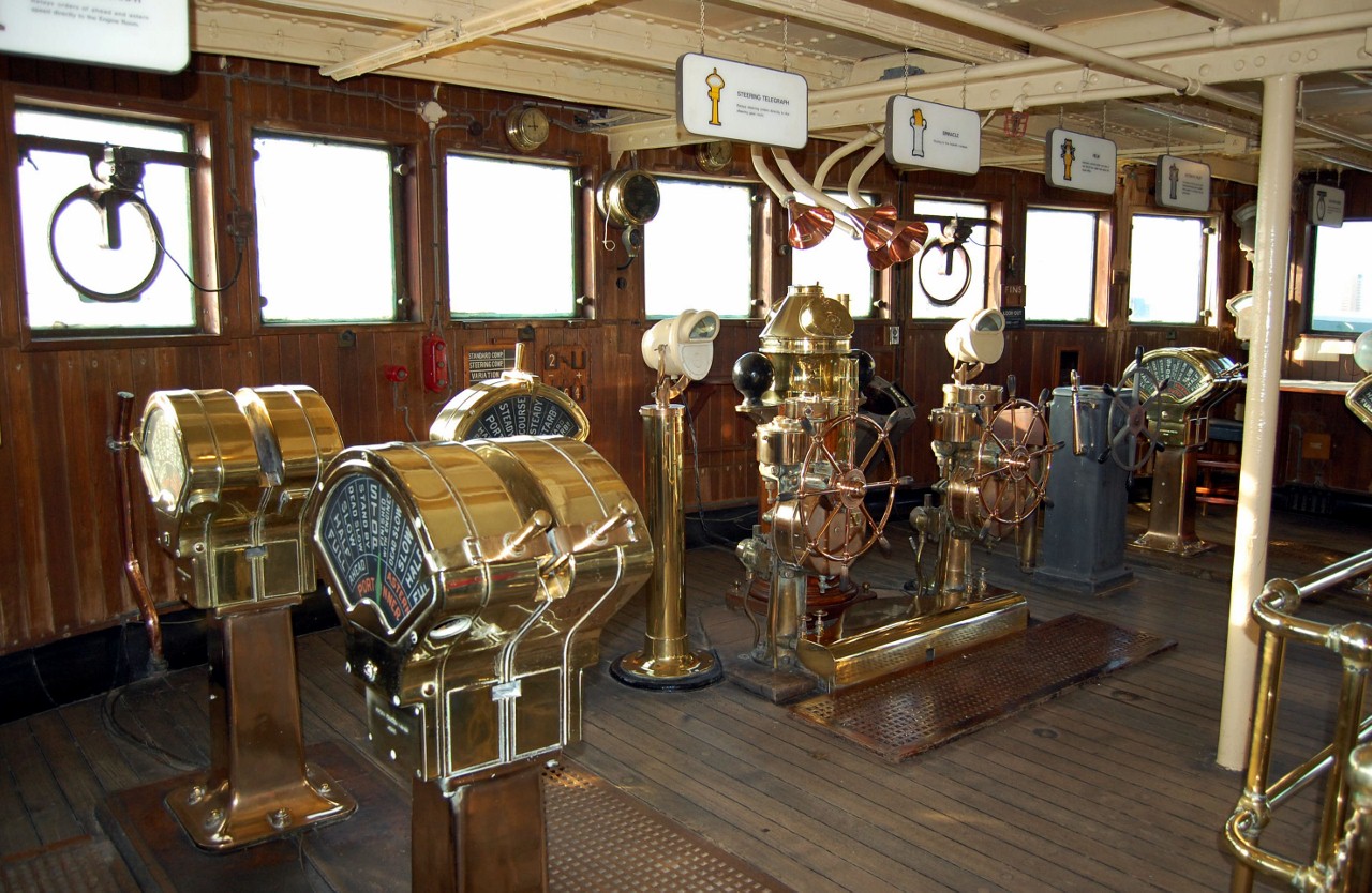 | March 24, 1936: THE QUEEN MARY departs John Brown Shipyard, steaming down the Clyde River to Gourock, Scotland. The ship goes aground twice despite prior dredging of the river and her shallow draft. Anchor trials and adjustment of the magnetic compasses are made off Gourock. Twenty of THE QUEEN MARY's lifeboats were left off the ship to save weight. Since they were manufactured in Gourock, the lifeboats were lifted into their davits upon ship's arrival. |
