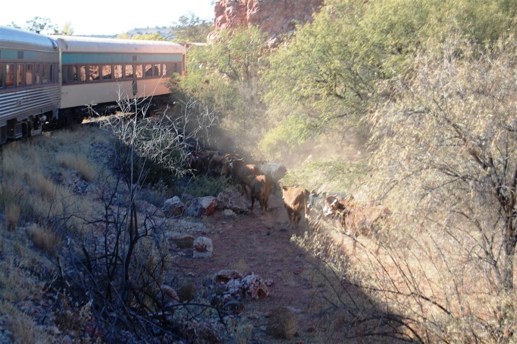 the Verde Valley Rail Road train when it encountered your cows in full stampede mode as the train was running around a bend that Dinah