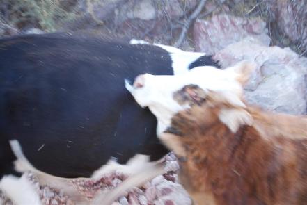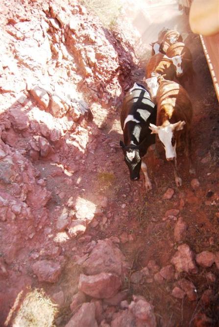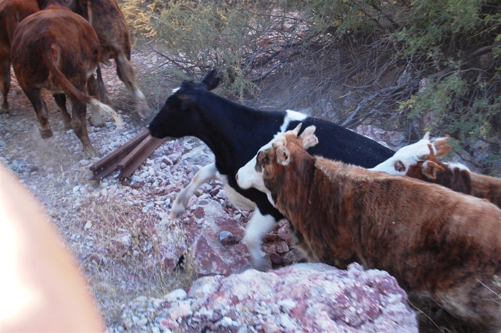 The cows were running at full bore and most of the cows running two or three abreast. They were pinned between the rocks and the rapidly